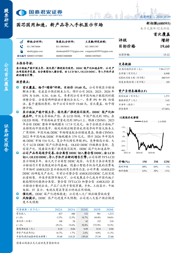 【国泰君安证券】【20241009】新相微(688593)国芯国用加速,新产品导入手机显示市场-18页