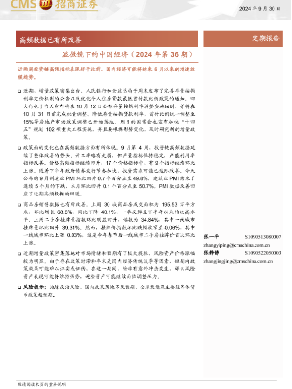 【海通证券】【20240930】显微镜下的中国经济(2024年第36期):高频数据已有所改善-39页