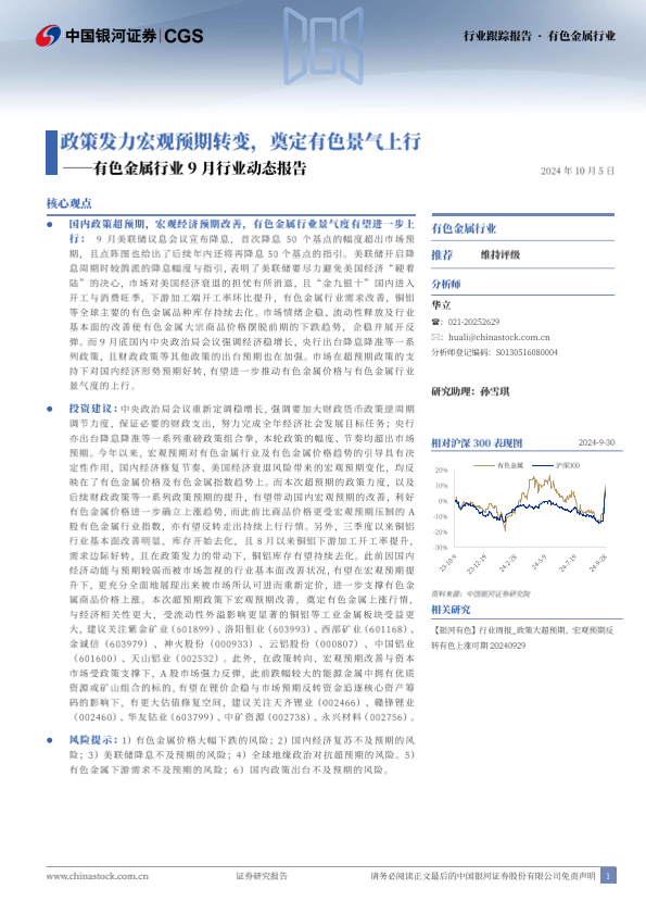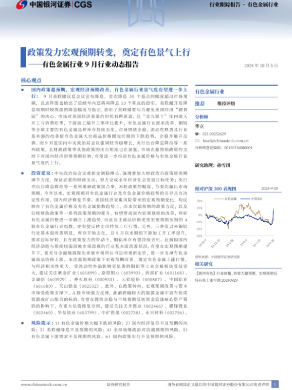 【银河证券】【20241005】有色金属行业9月行业动态报告:政策发力宏观预期转变,奠定有色景气上行-23页