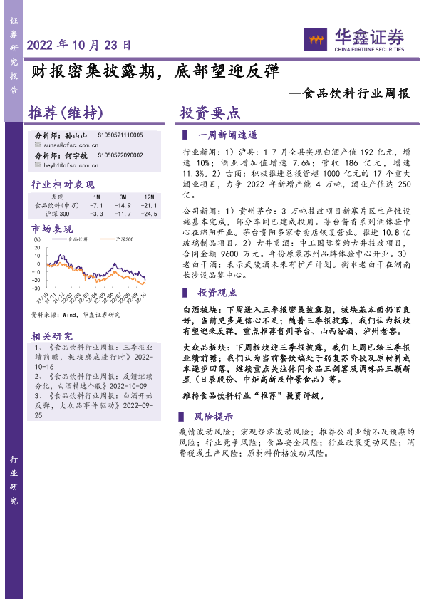 【华鑫证券】【20221023】食品饮料行业周报:财报密集披露期,底部望迎反弹-21页