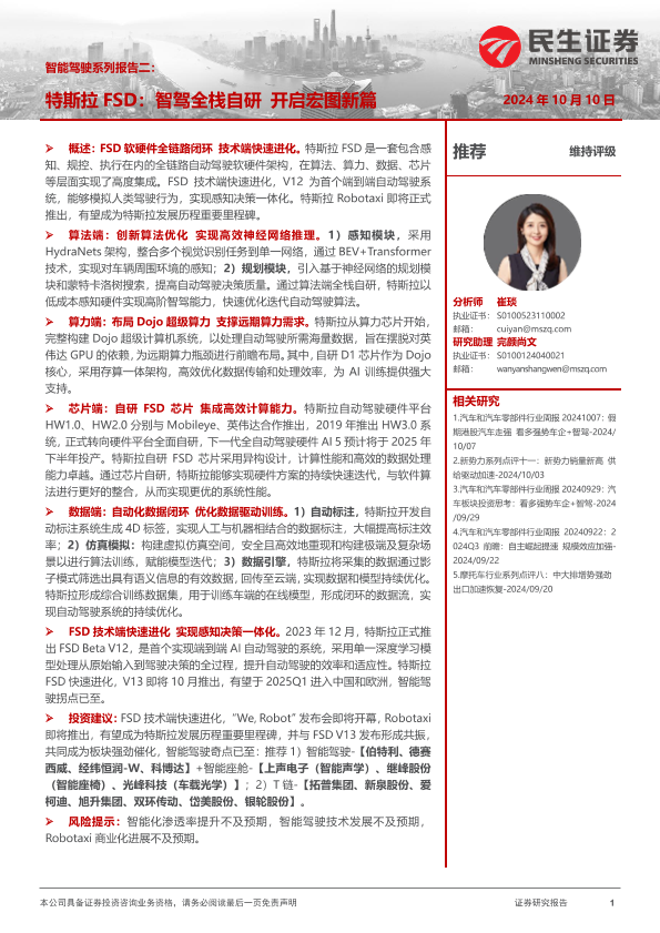 【民生证券】【20241010】汽车行业智能驾驶系列报告二:特斯拉FSD,智驾全栈自研,开启宏图新篇-55页