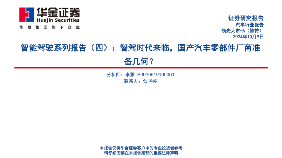 【华金证券】【20241009】汽车行业智能驾驶系列报告(四):智驾时代来临,国产汽车零部件厂商准备几何?-76页