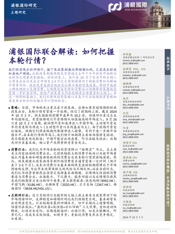 【浦银国际】【20241007】浦银国际联合解读:如何把握本轮行情?-54页