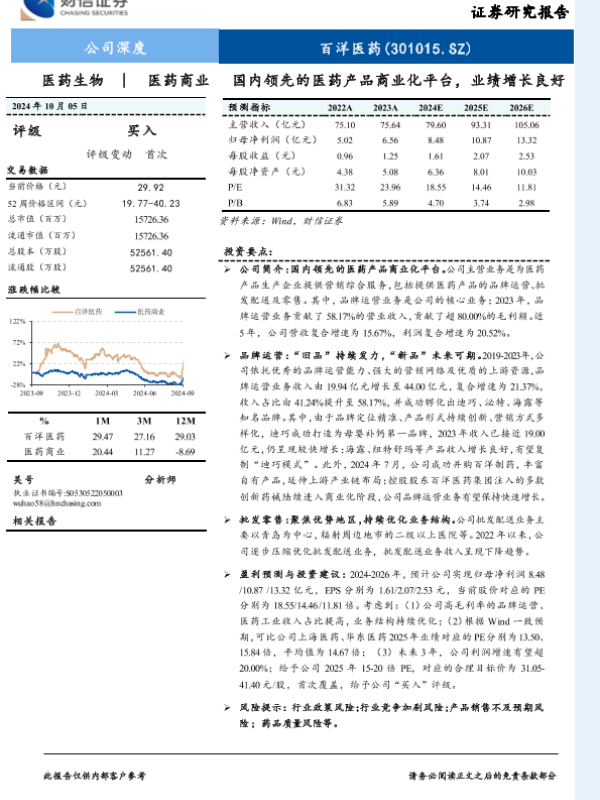 【财信证券】【20241005】百洋医药(301015)国内领先的医药产品商业化平台,业绩增长良好-26页