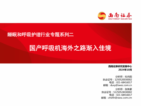 【西南证券】【202410】睡眠和呼吸护理行业专题系列二:国产呼吸机海外之路渐入佳境-34页