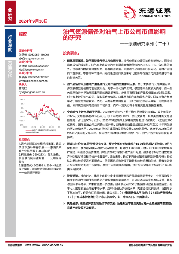 【东海证券】【20240930】油气资源储备对油气上市公司市值影响的研究-18页