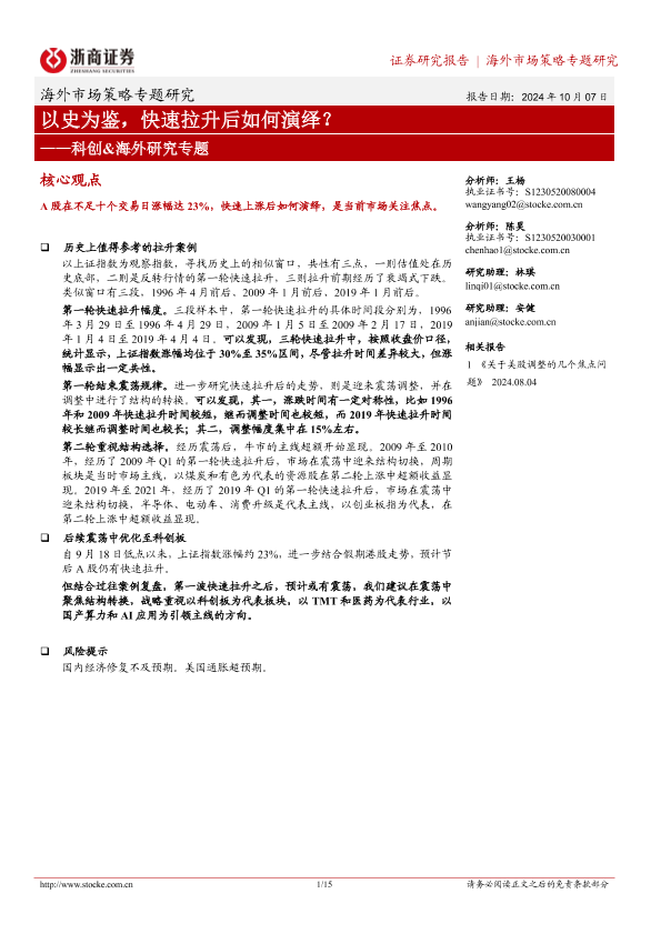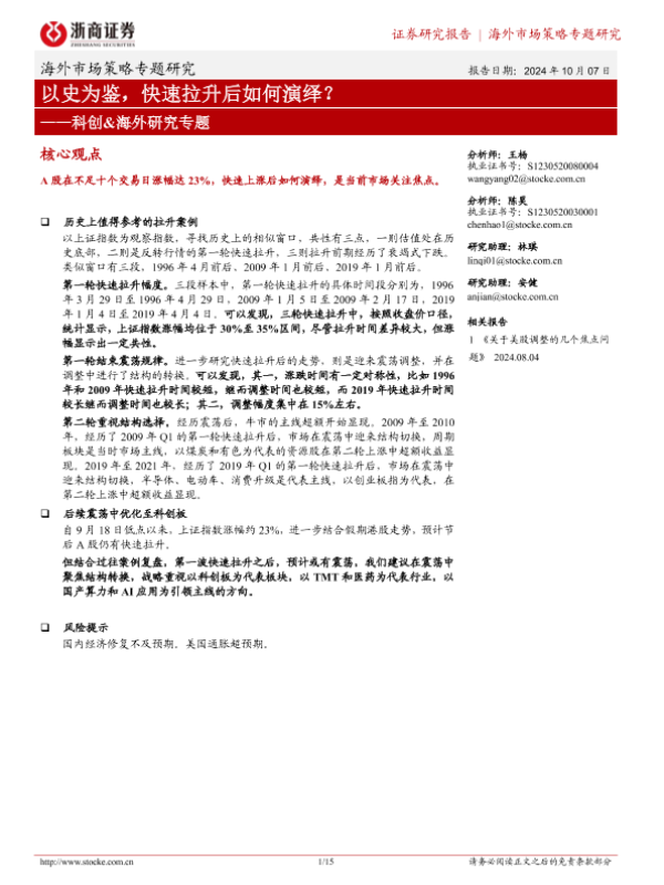 【浙商证券】【20241007】科创&海外研究专题:以史为鉴,快速拉升后如何演绎?-15页