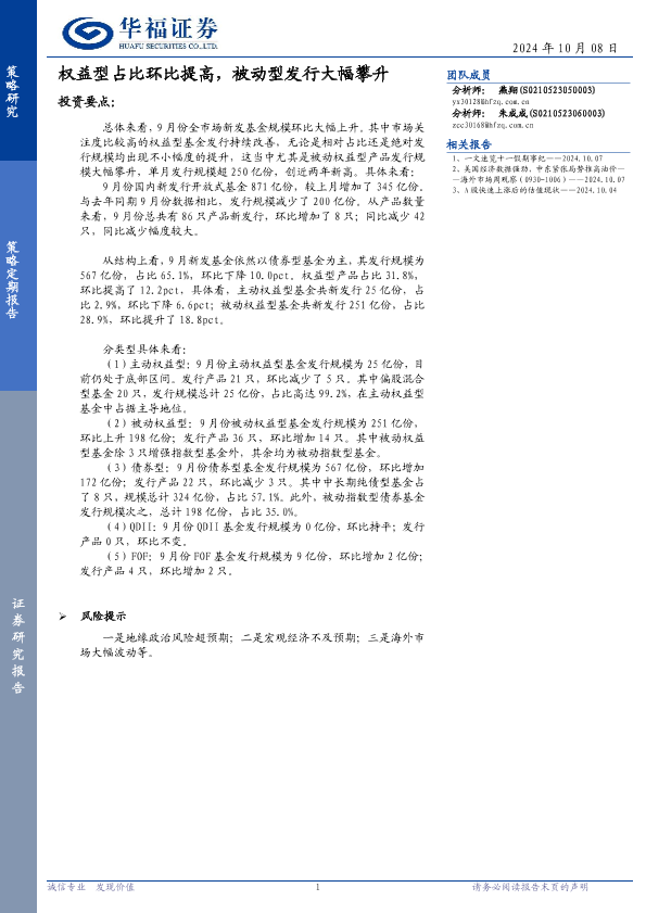 【华福证券】【20241008】策略定期报告:权益型占比环比提高,被动型发行大幅攀升-10页