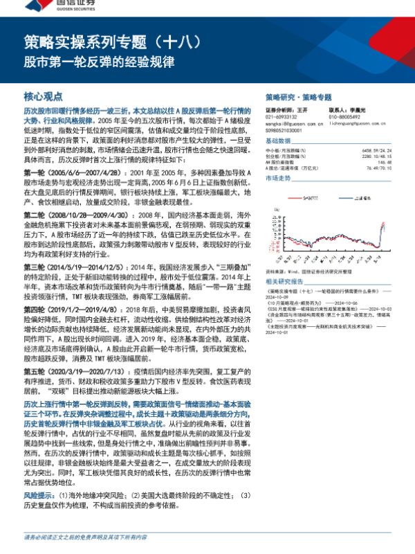 【国信证券】【202410】策略实操系列专题(十八):股市第一轮反弹的经验规律-18页