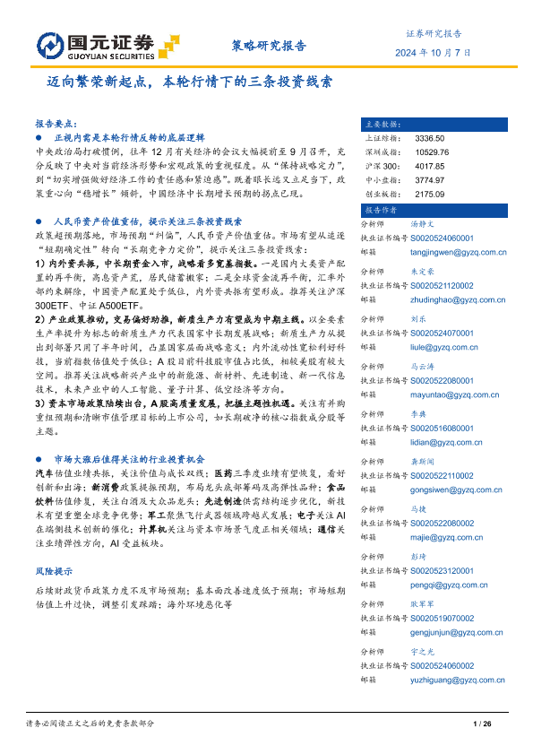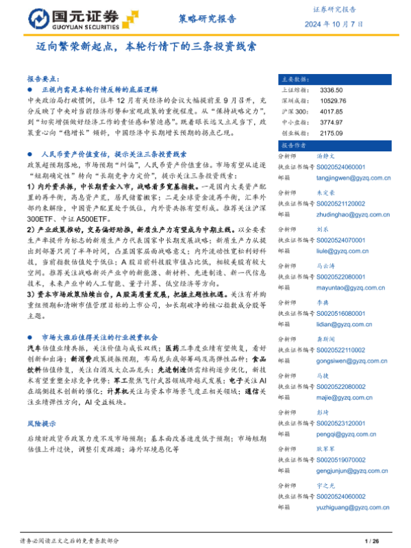 【国元证券】【20241007】策略研究报告:迈向繁荣新起点,本轮行情下的三条投资线索-26页