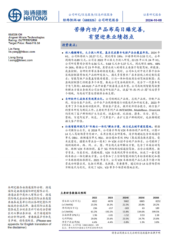 【海通国际】【20241008】经纬恒润-W(688326)苦修内功产品布局日臻完善,有望迎来业绩拐点-12页