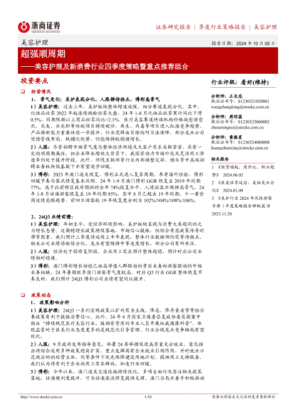 【浙商证券】【20241005】美容护理及新消费行业四季度策略暨重点推荐组合:超强顺周期-10页