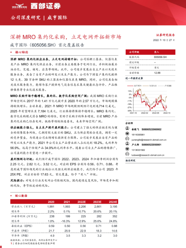 市场开拓 电网行业 盈利预测 股票分析 MRO集约化采购