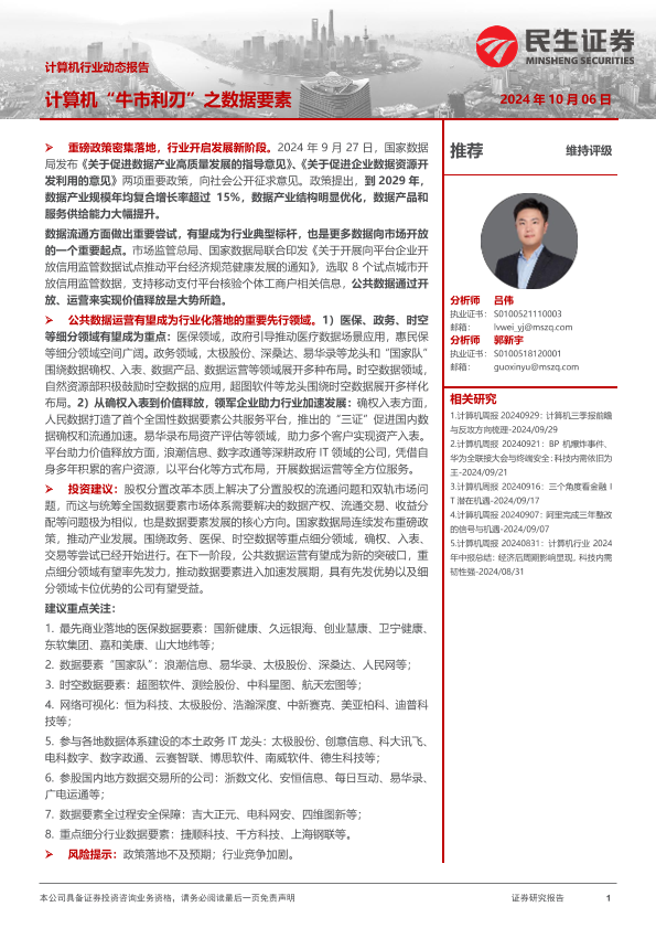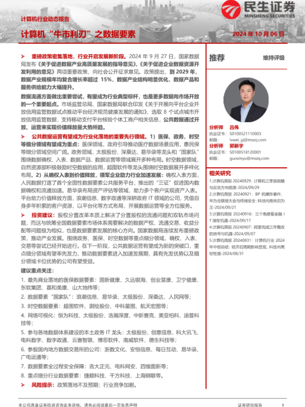 【民生证券】【20241006】计算机行业动态报告:计算机“牛市利刃”之数据要素-17页