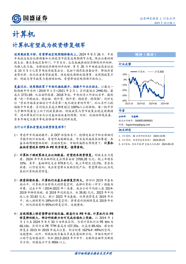 【国盛证券】【20241006】计算机行业点评:计算机有望成为投资修复领军-11页