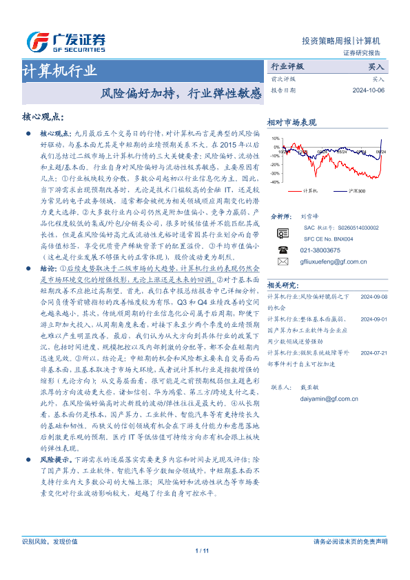 【广发证券】【20241006】计算机行业:风险偏好加持,行业弹性敏感-11页