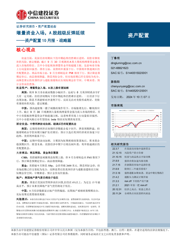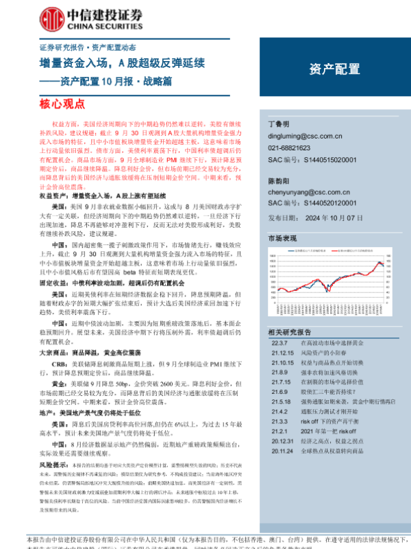 【中信建投证券】【20241007】资产配置10月报·战略篇:增量资金入场,A股超级反弹延续-22页