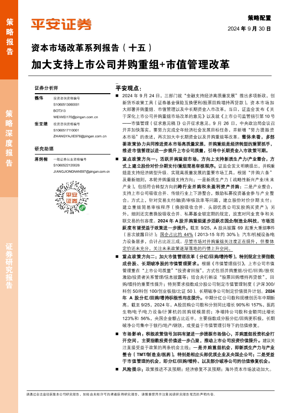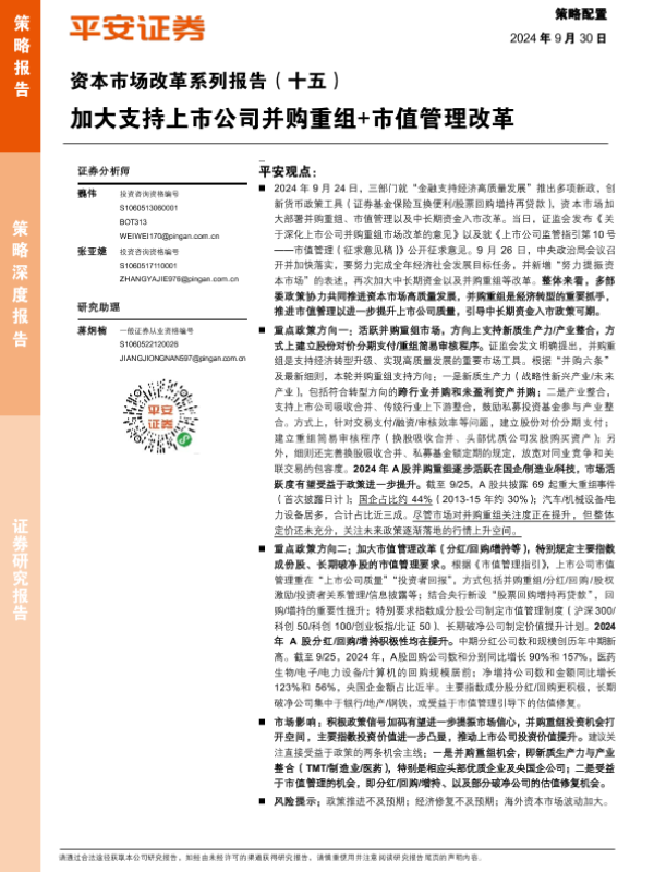 【平安证券】【20240930】资本市场改革系列报告(十五):加大支持上市公司并购重组+市值管理改革-16页