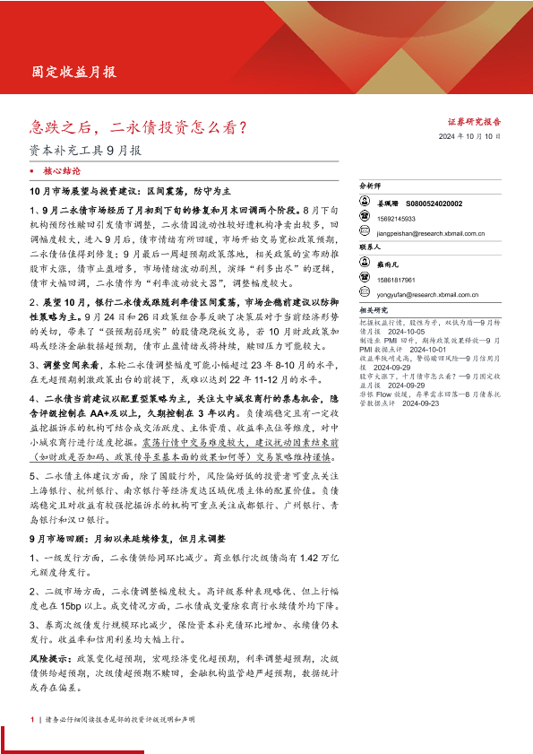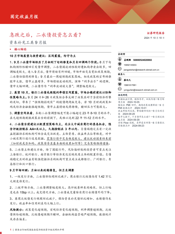 【西部证券】【20241010】资本补充工具9月报:急跌之后,二永债投资怎么看?-20页