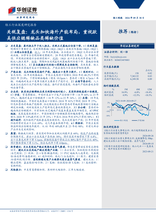 【华创证券】【20240930】轻工行业深度研究报告-关税复盘:龙头加快海外产能布局,重视欧美供应链稀缺品类稀缺价值-23页
