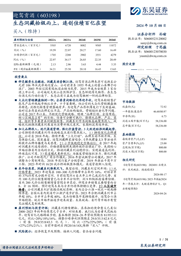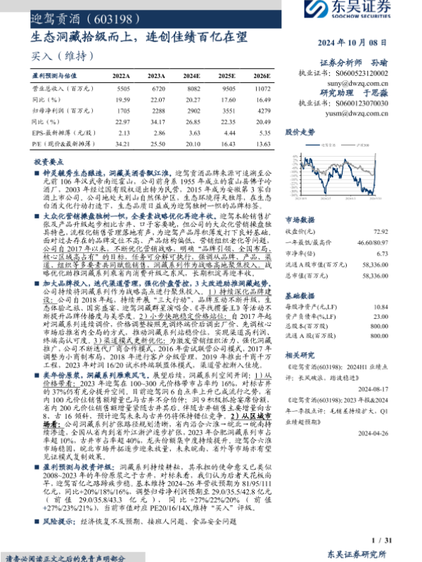 【东吴证券】【20241008】迎驾贡酒(603198)生态洞藏拾级而上,连创佳绩百亿在望-31页