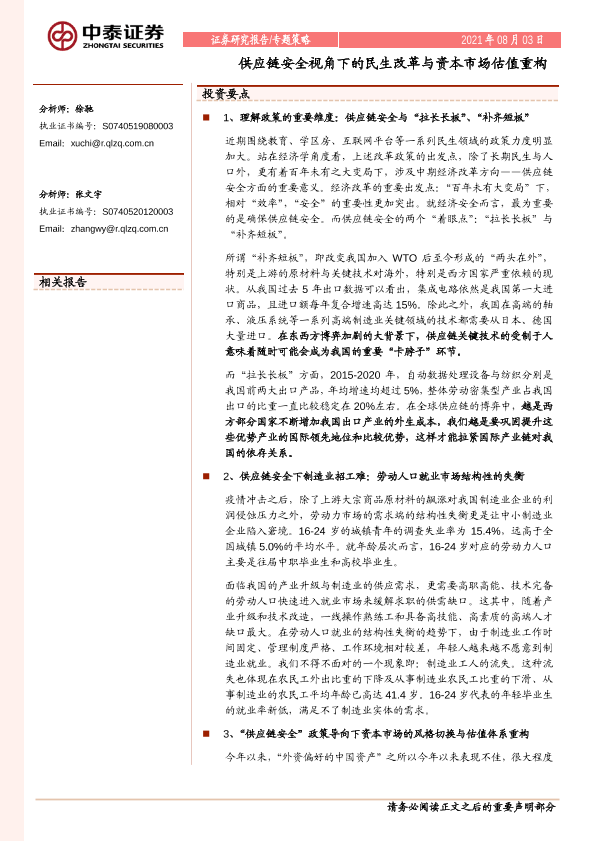 【中泰证券】【20210803】供应链安全视角下的民生改革与资本市场估值重构-23页
