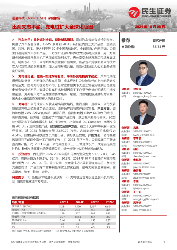 【民生证券】【20241008】道通科技(688208)深度报告:出海矢志不渝,充电桩扩大全球化版图-32页