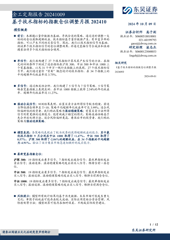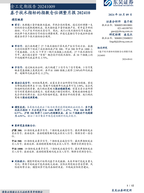 【东吴证券】【20241009】金工定期报告:基于技术指标的指数仓位调整月报202410-12页