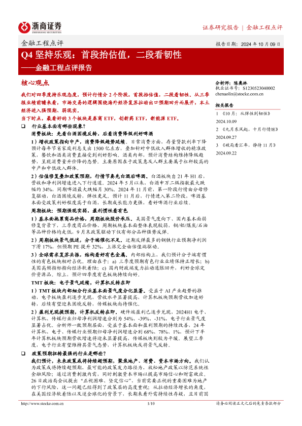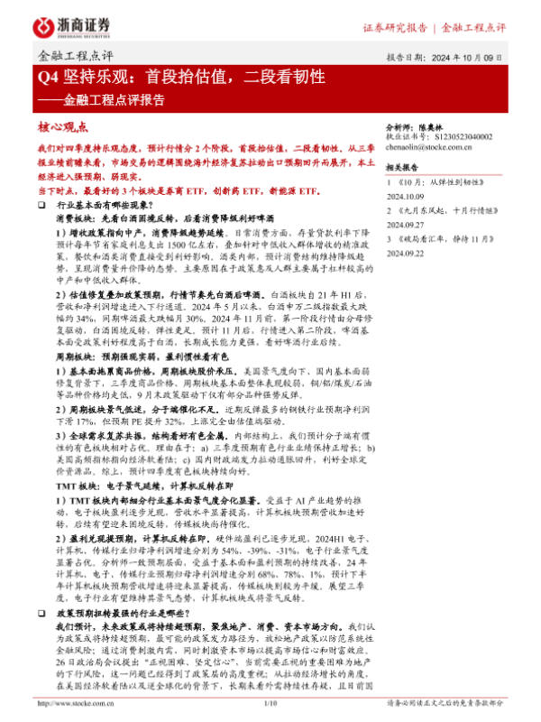 【浙商证券】【20241009】金融工程点评报告:Q4坚持乐观:首段抬估值,二段看韧性-10页