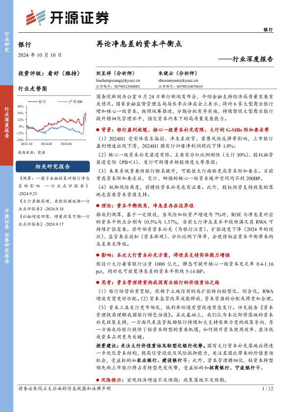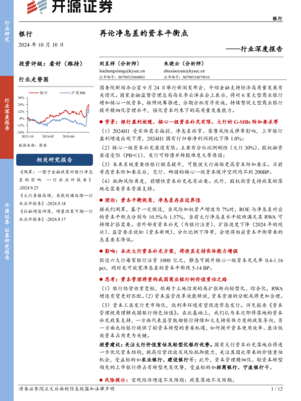 【开源证券】【20241010】银行行业深度报告:再论净息差的资本平衡点-12页