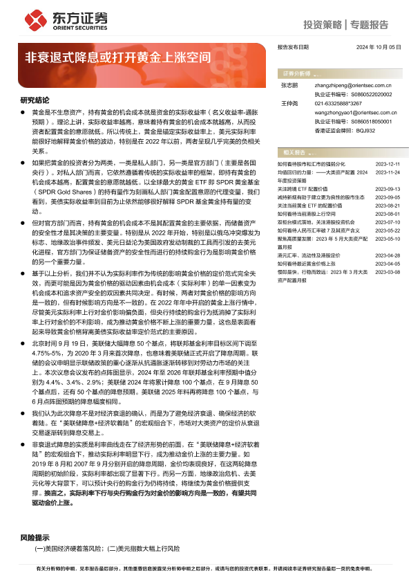 【东方证券】【20241005】非衰退式降息或打开黄金上涨空间-16页