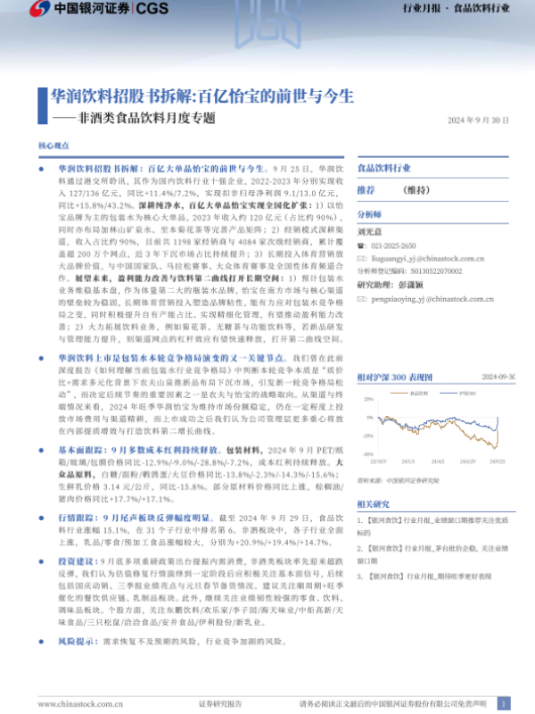 【银河证券】【20240930】非酒类食品饮料行业月度专题:华润饮料招股书拆解,百亿怡宝的前世与今生-18页