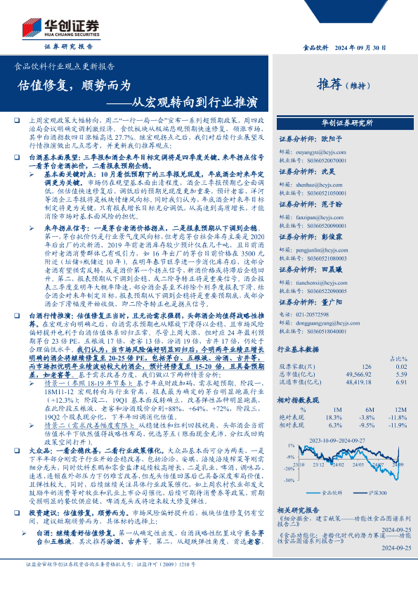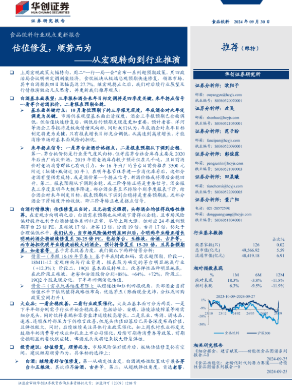 【华创证券】【20240930】食品饮料行业观点更新报告:从宏观转向到行业推演,估值修复,顺势而为-17页
