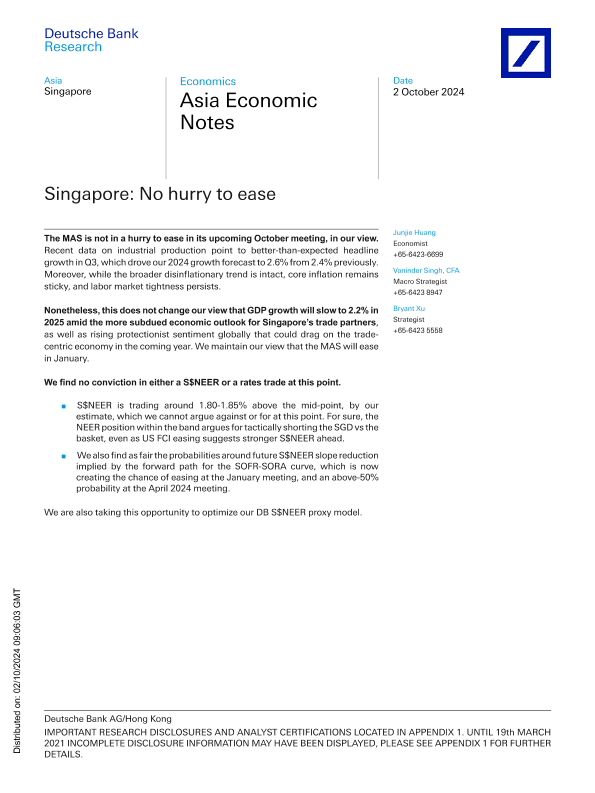 【Deutsche Bank】【20241002】Deutsche Bank-Asia Economic Notes Singapore No hurry to ease-12页