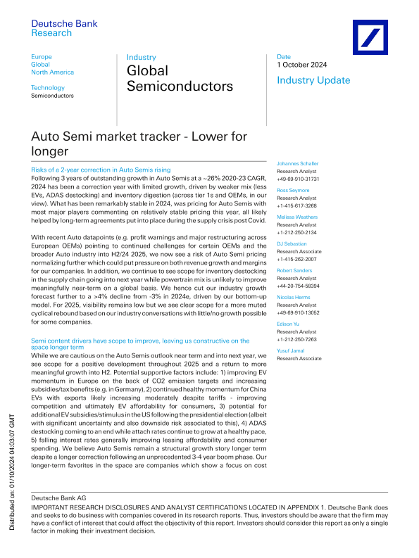 【Deutsche Bank Research】【20241001】Auto Semi market tracker - Lower for longer-28页