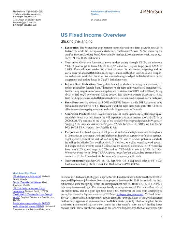 【J.P. Morgan】【20241004】JPMorgan Econ FI-US Fixed Income Overview Sticking the landing-14页