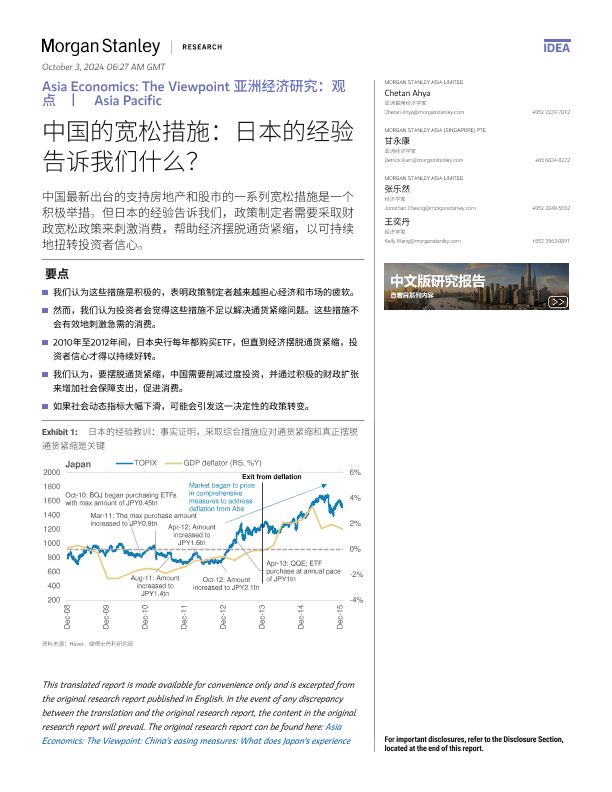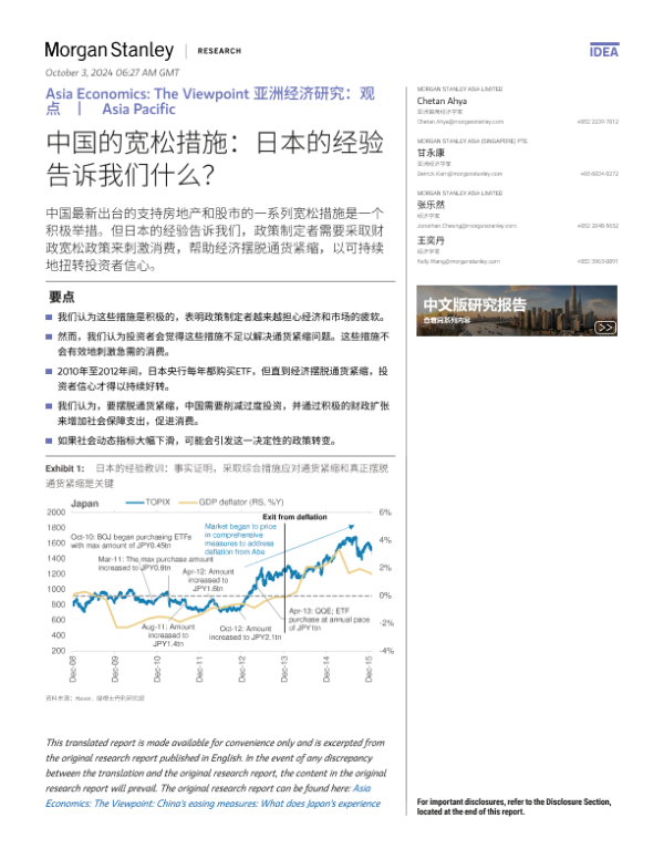 【Morgan Stanley】【20240924】亚洲经济研究:观点 中国的宽松措施:日本的经验告诉我们什么?-9页