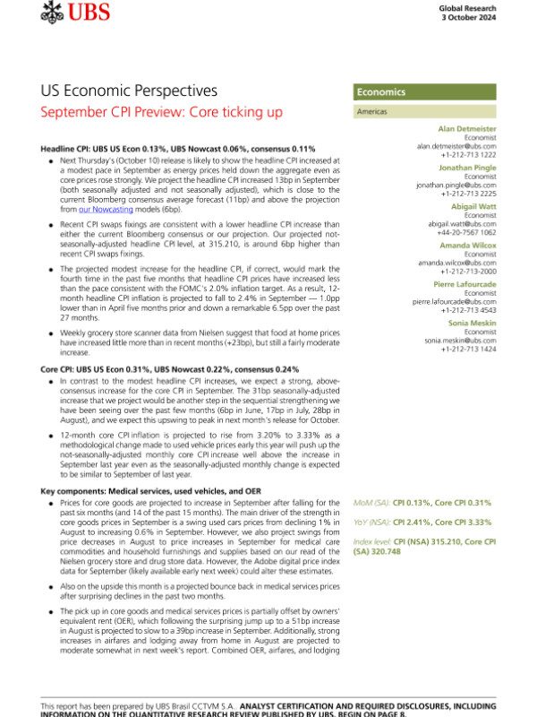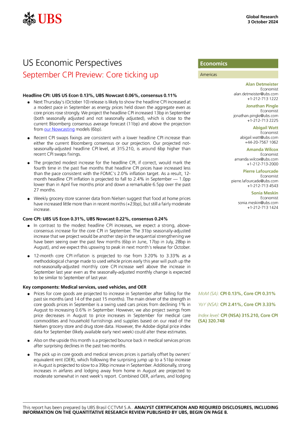 【UBS Brasil CCTVM S.A.】【20241003】US Economic Perspectives _September CPI Preview Core ticking up-11页