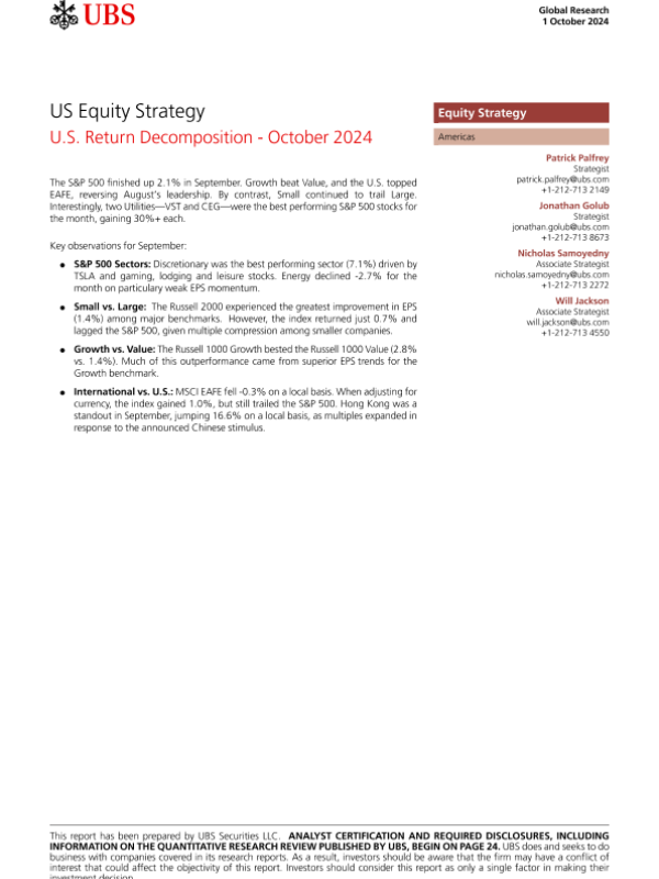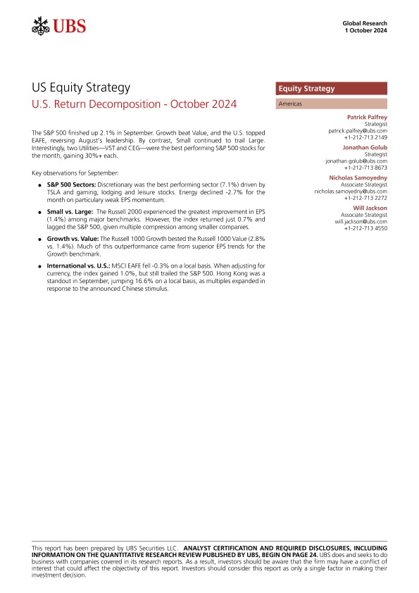 【UBS Securities LLC】【20241001】US Equity Strategy U.S. Return Decomposition - October 2024-28页