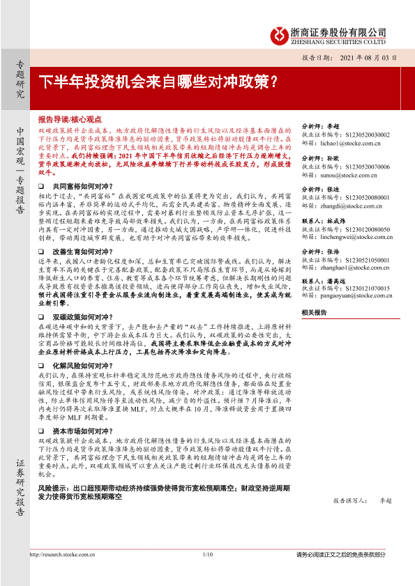 【浙商证券】【20210803】专题研究:下半年投资机会来自哪些对冲政策?-10页