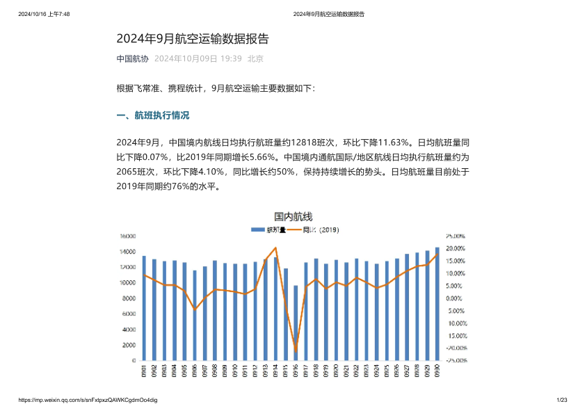 【中国航协】【202410】2024年9月航空运输数据报告-23页