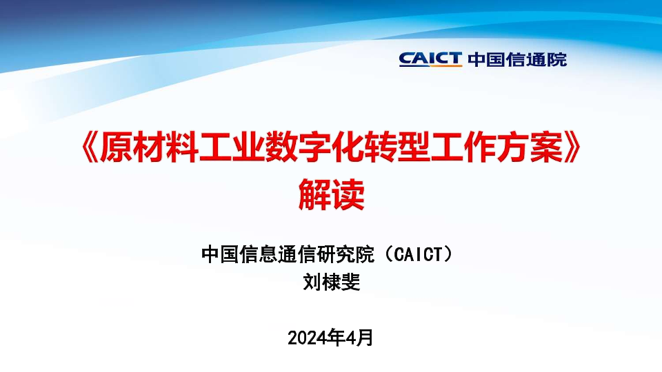 【中国信息通信研究院(CAICT)】【202404】《原材料工业数字化转型工作方案》解读-23页
