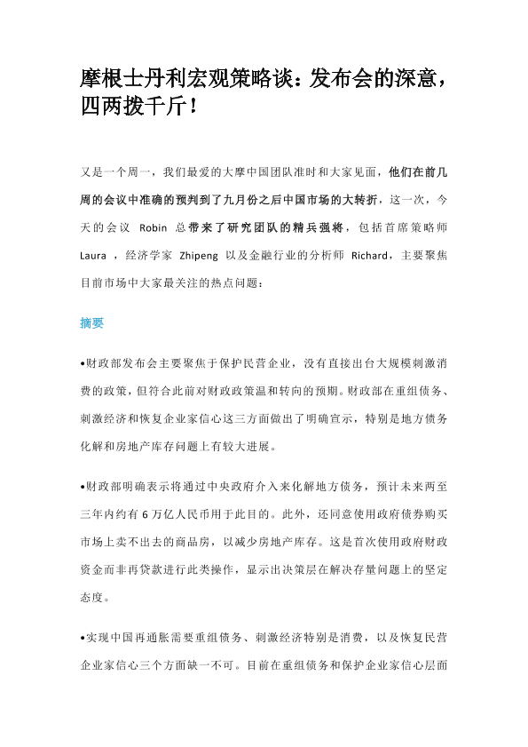 【Morgan Stanley】【20241014】摩根士丹利宏观策略谈:发布会的深意,四两拨千斤-15页