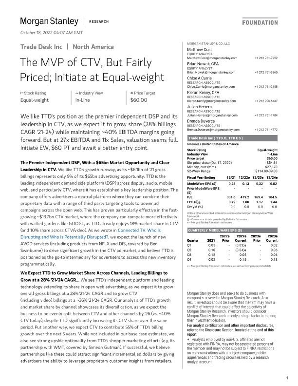 【Morgan Stanley】【20221018】nley-Trade Desk Inc The MVP of CTV, But Fairly Priced; Initiate ...-64页