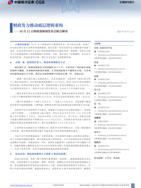 【银河证券】【20241012】10月12日财政部新闻发布会联合解读:财政发力推动底层逻辑重构-29页