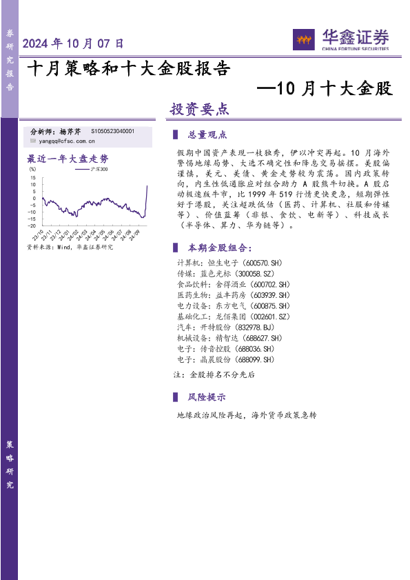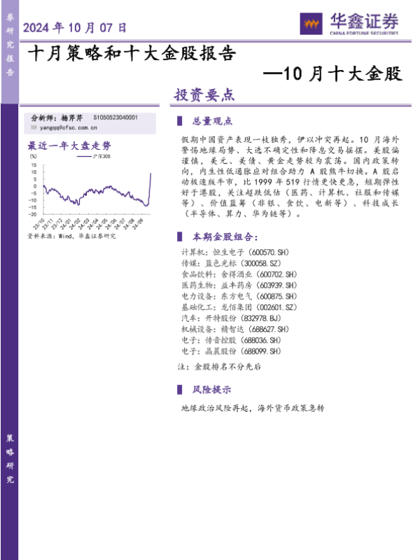 【华鑫证券】【20241007】10月十大金股:十月策略和十大金股报告-18页
