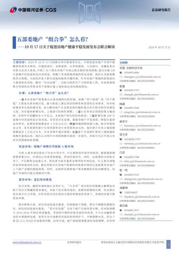 【银河证券】【20241017】10月17日关于促进房地产健康平稳发展发布会联合解读:五部委地产“组合拳”怎么看?-30页