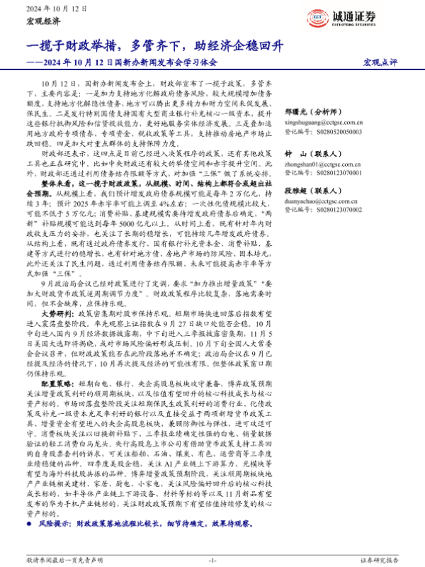 【诚通证券】【20241012】2024年10月12日国新办新闻发布会学习体会:一揽子财政举措,多管齐下,助经济企稳回升-11页