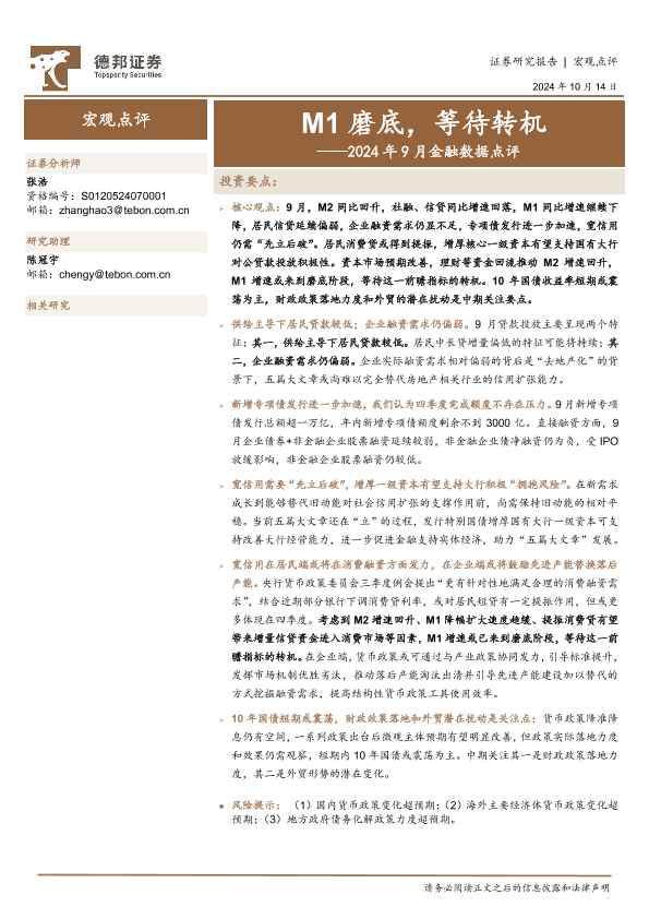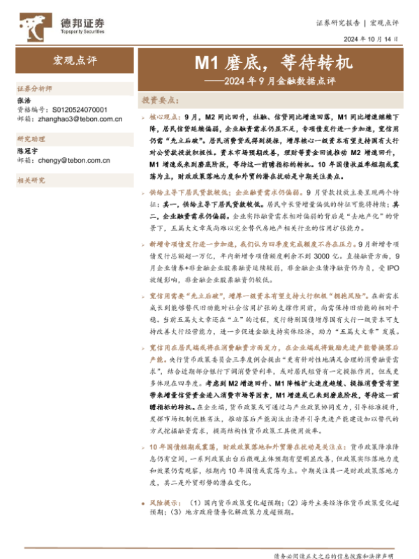 【德邦证券】【20241014】2024年9月金融数据点评:M1磨底,等待转机-10页