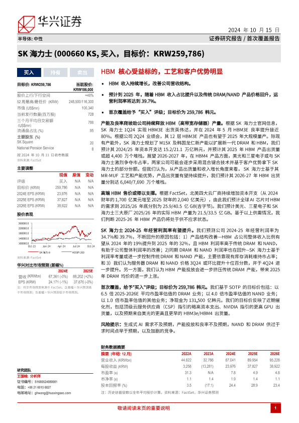【华兴证券】【20241015】SK海力士(000660)HBM核心受益标的,工艺和客户优势明显-37页